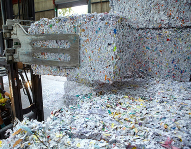 Not only do we offer the reassurance of secure destruction, we can also help your company work towards its environmental targets. In keeping with our ISO 14001 accreditation, we aim to recycle 100% of non-contaminated waste. All bulk shredded paper and cardboard is baled at our recycling depot and sent to an environmentally approved and accredited mill in the United Kingdom, where it’s made into tissue products and new packaging material.